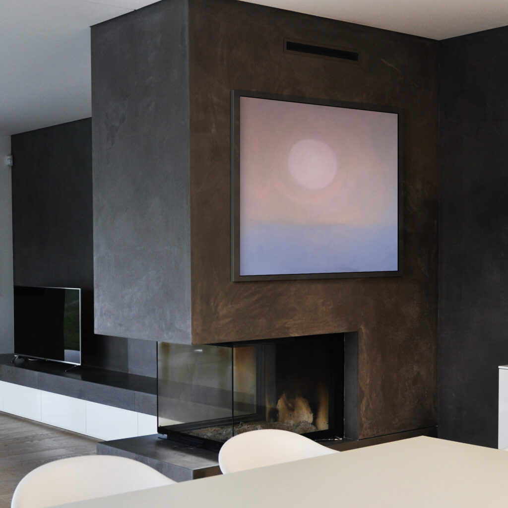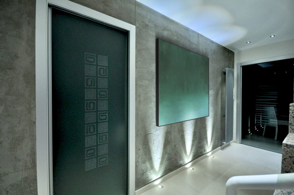 Creazione di design su misura e cornici architettoniche attorno alle opere per valorizzare ogni intervento artistico.
